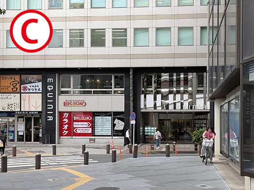 横断歩道を渡るとすぐ目の前にあるEQUINIAビルがあります。そのビルの3階が当院です。